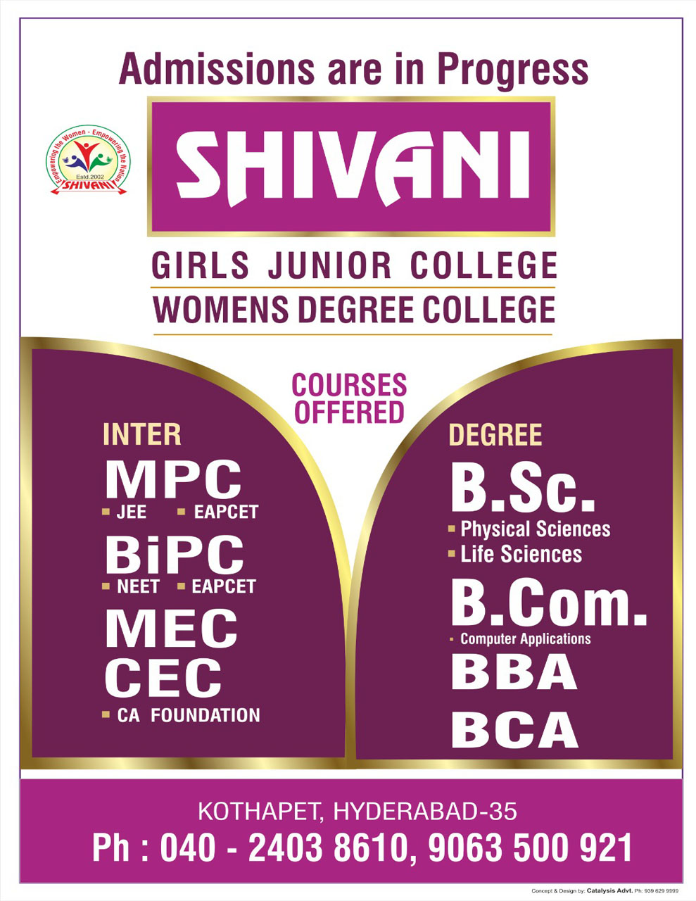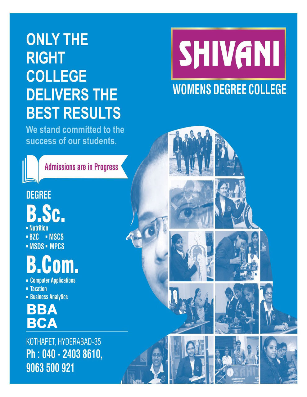 We warmly welcome the young aspiring newly admitted students to be a part of Shivani Womens college and pass out as qualified professionals.