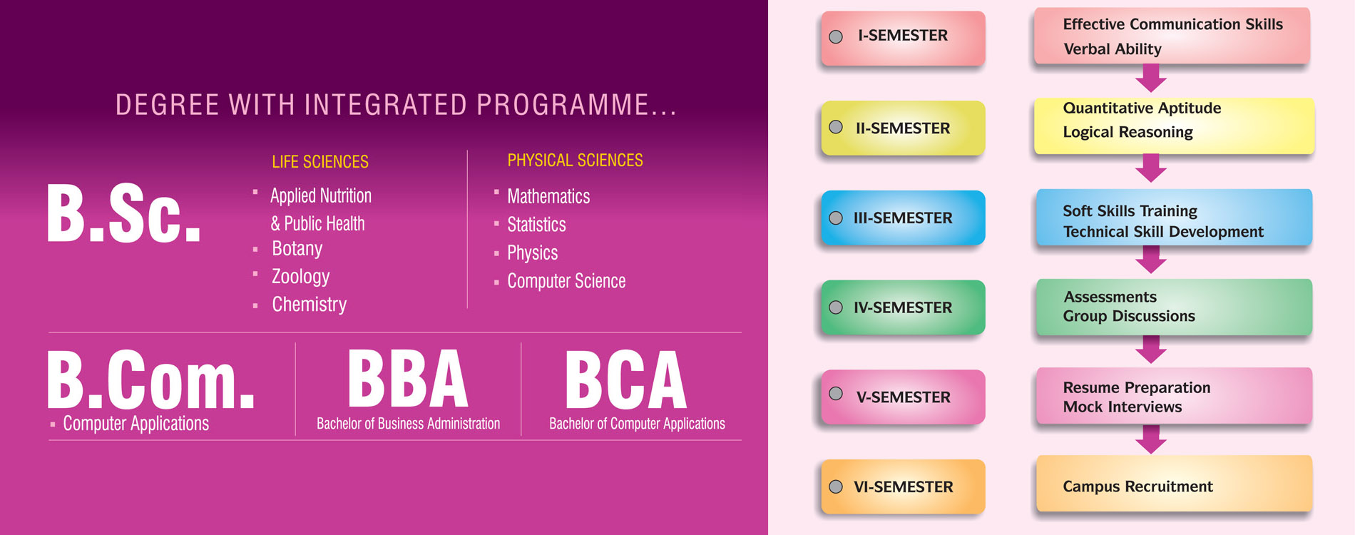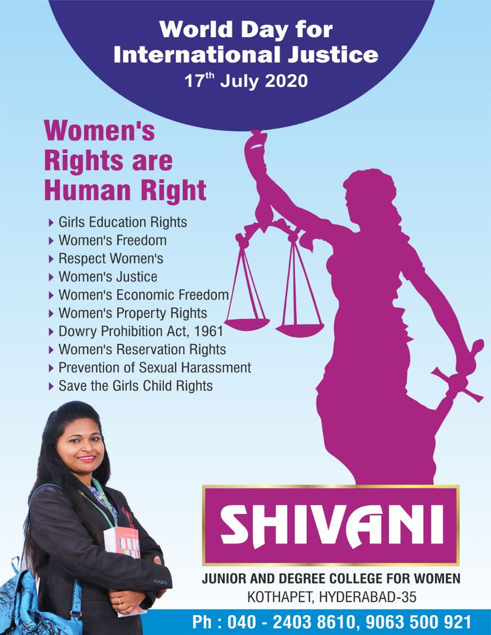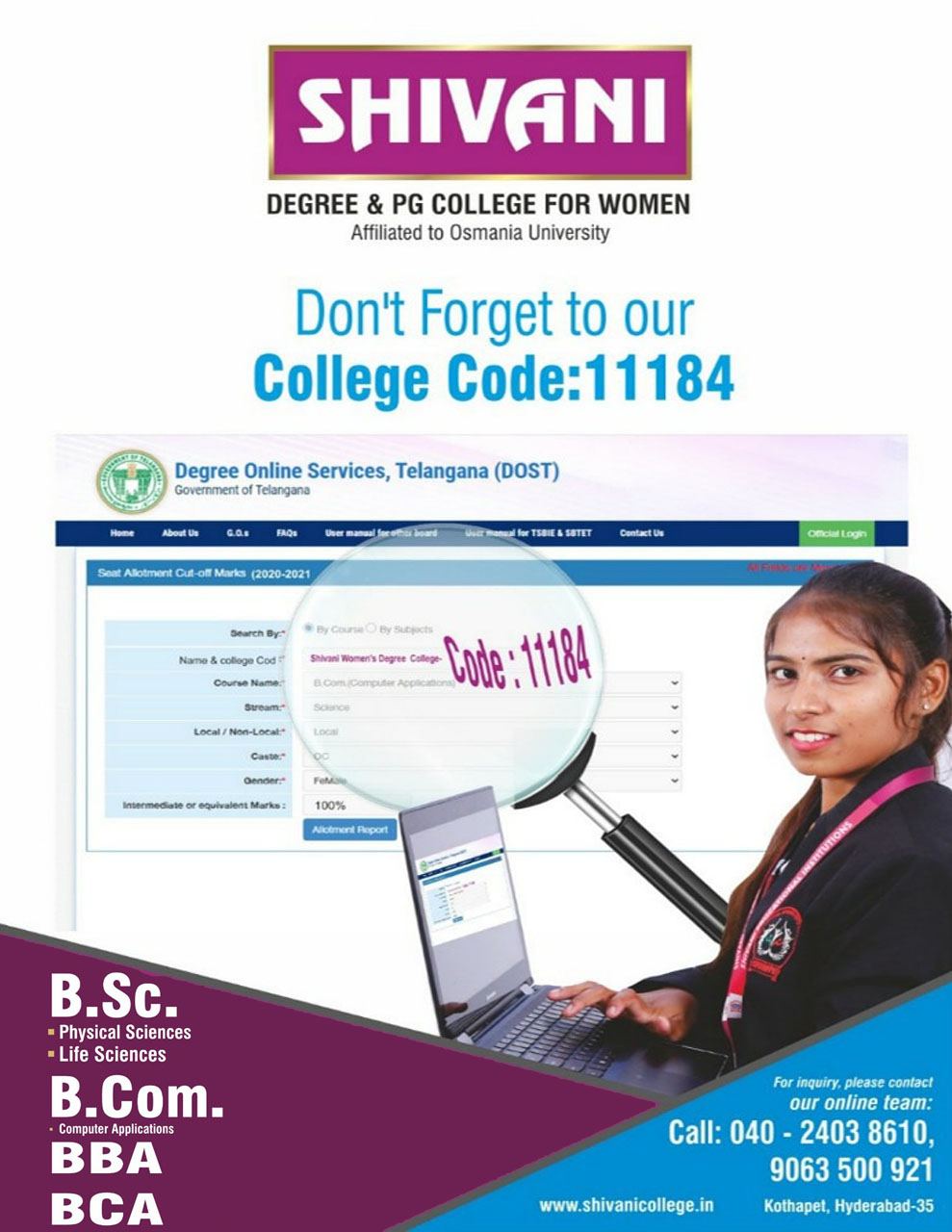 Shivani womens degree college Provides practical and professional relevance of working in harmony, we enable us to restore wholeness to the ancient tradition of liberal learning, by embracing practice as the first fruit of inquiry. Perfectly designed training sessions are carried out, soft skills like personality development, positive attitude building, time management, body language & communication skills classes are conducted regularly. We work like a bridge between students and employer.